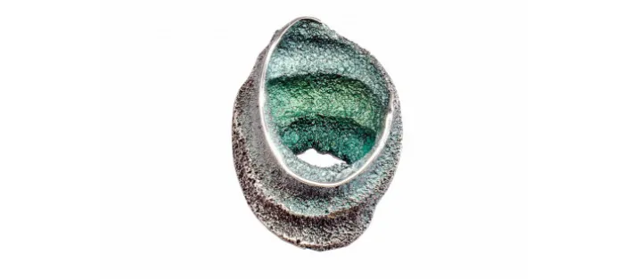 Colgante de plata de ley (925) con pigmentos naturales viene acompañado de una sirga de acero.
