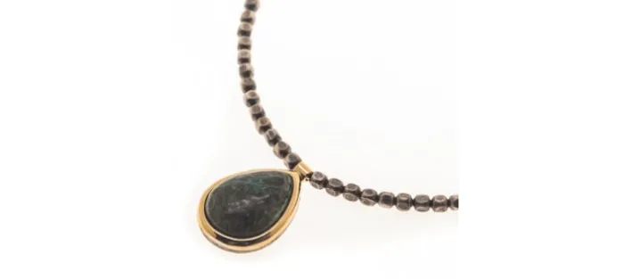 Colgante de plata envejecida de priemra ley (925), oro amarillo de 18 Quilates y Azurita. Collar de plata de 41cm extensible a 34cm