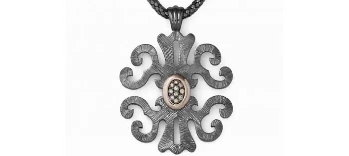 Colgante de Plata con baño de rutenio, oro rosa y diamantes coñac.
