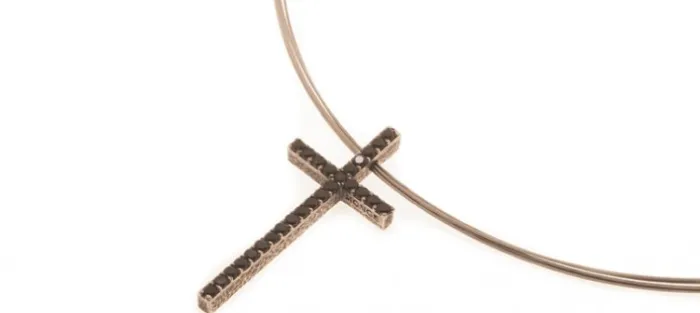 Colgante de plata envejecida de primera ley (925) y circonitas negras. Sirga de acero de 42 o 45 cm. Posibilidad de realizarla en varios colores.