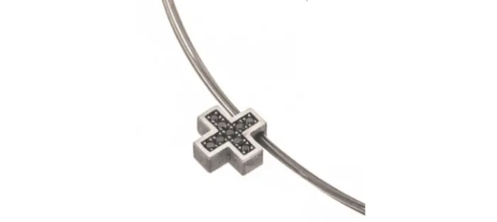 Colgante de plata envejecida de primera ley (925), 9 diamantes negros de 1.6 mm y (0.19 Quilates).