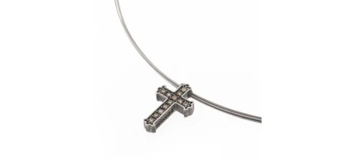 Colgante unisex de plata envejecida de primera ley (925), 12 diamantes color coñac de 2mm con un peso aproximado de 0.40 cts.