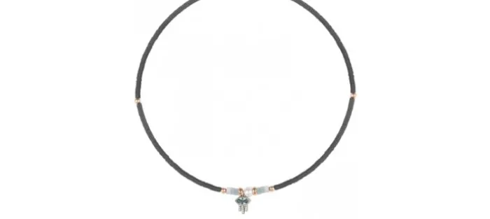 Esta exquisita pieza se compone de una circonita marquise en tonos turquesa y una perla barroca, acompañadas de circonitas blancas talla brillante que son las protagonistas de este colgante de plata de ley 925 con detalles de plata bañada en oro rosa de 24 kt, rodeados de piezas de jade y completados con hematites grises sobre acero negro.