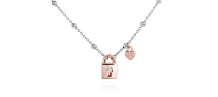 Gargantilla de plata de primera ley (925) con baño de rodio y chapado n oro rosa de 18 Kt y circonita blanca. (largo: 42+3 cm.).