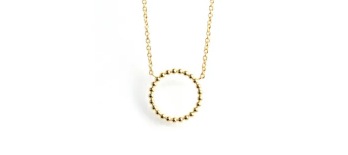 Colgante fabricado en acero inoxidable con PVD dorado.