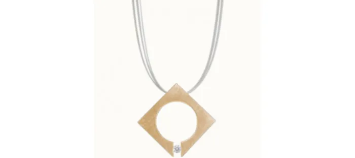 Colgante fabricado en acero inoxidable con PVD dorado y circonitas.