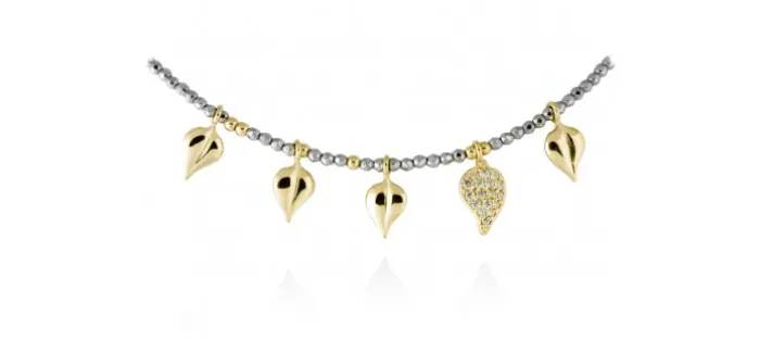 Gargantilla de plata de primera ley (925) chapada en oro amarillo de 18kt con circonita blanca y hematites. (largo: 40+3 cm.)