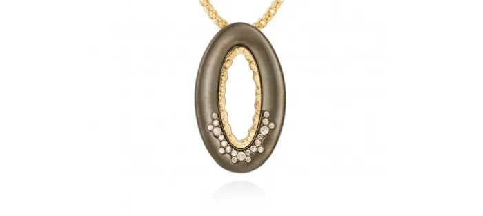 Colgante de plata de primera ley (925) con baño de rutenio y chapado en oro amarillo de 18kt y circonita coñac. (tamaño: 3,5 cm.) (Cadena 70 cm)