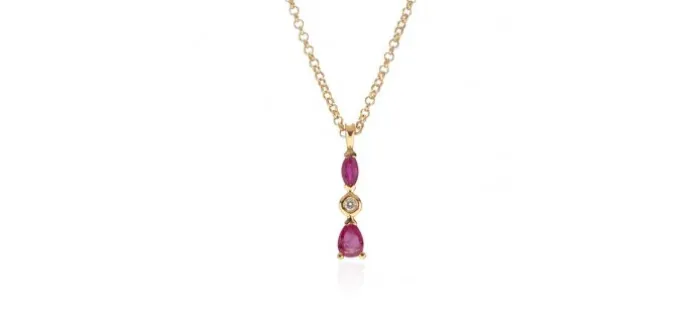 Piedras: diamantes naturales de 1,5 mm Top Wesselton y rubí natural de 4×5 mm y de 5×2,5 mm.