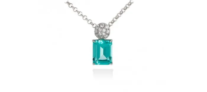 Gargantilla de plata de primera ley (925) con baño de rodio con circonita blanca y piedra sintetica color paraiba. (largo: 40+5 cm.)