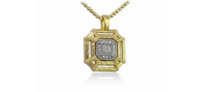 Colgante de plata de primera ley (925) con baño de rodio y chapado en oro de 18 Kt. con circonita blanca. Cadena incluida.