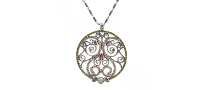 Colgante de plata envejecida (925), Circonitas y Calcedonia.
