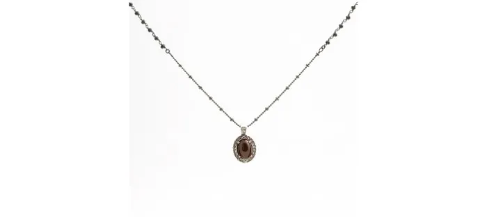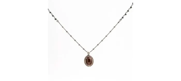 Colgante de plata envejecida (925), Circonitas y piedra Granate.