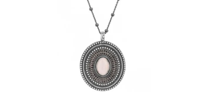 Colgante plata envejecida de primera ley (925), jade rosa y circonitas brown.