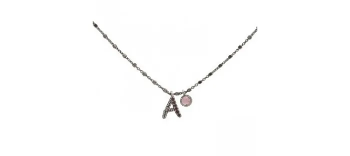Colgante plata envejecida (925) letra a ojo de gato y circonitas.