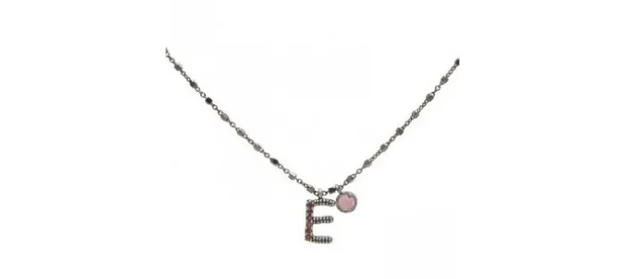 Colgante plata envejecida (925) letra e ojo de gato y circonitas.