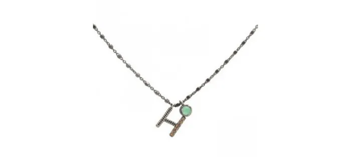 Colgante plata envejecida (925) letra H calcedonia y circonitas.