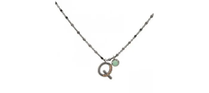 Colgante plata envejecida (925) letra Q calcedonia y circonitas.