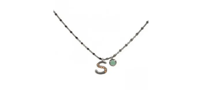 Colgante plata envejecida (925) letra S calcedonia y circonitas.