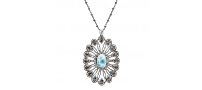 Colgante plata de primera ley (925), larimar y circonitas cava.