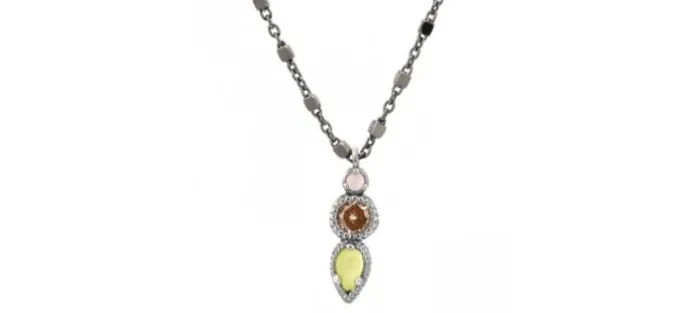 Colgante de plata. Engastado con piedras semipreciosas. Piedra ojo de gato verde, ojo de gato rosa y circonita cava. Medida 17x6mm. Cadena de plata con baño de rutenio largo 45cm. Diseño elaborado en España 100% artesanal.