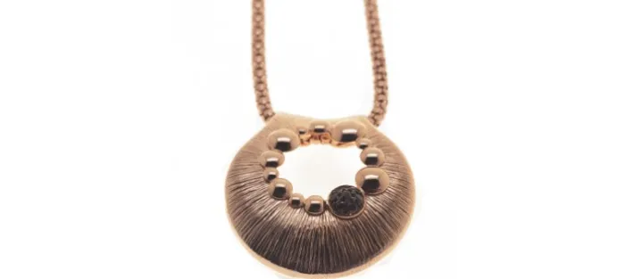 Colgante de plata de primera ley (925) con baño rosa y circonitas negras. Cadena incluida de 45 cm.