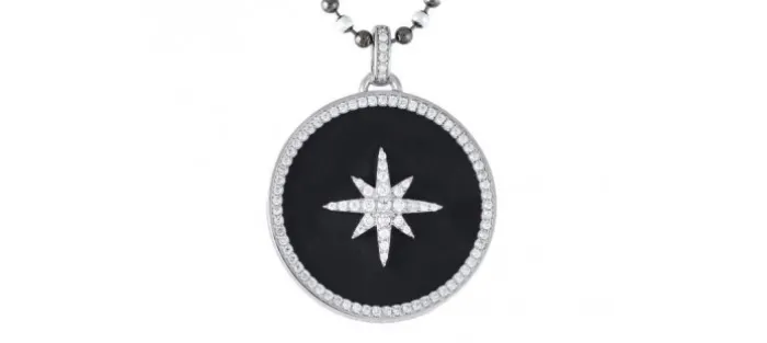Colgante de plata de primera ley (925) con baño de rodio, circonita blanca y ónix negro. (tamaño: 5 cm.) (Cadena no incluida).