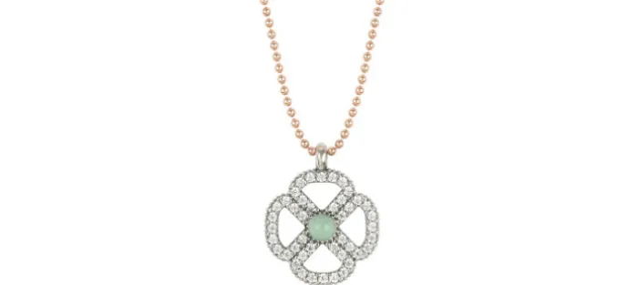 Colgante de plata de ley 925, símil ópalo azul y circonitas.