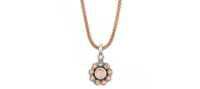 Colgante de plata de primera ley (925) Cuarzo rosa y Zirconitas.
