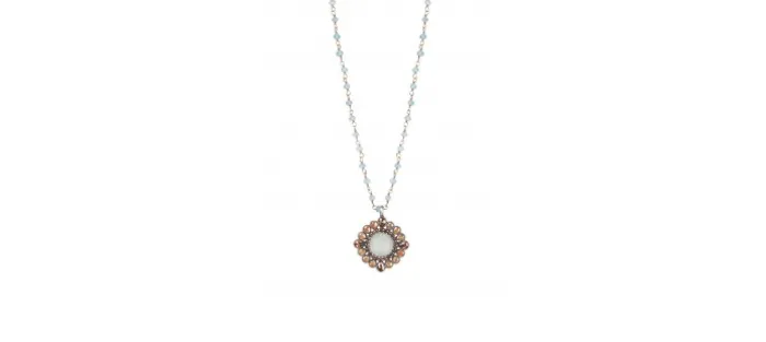 Colgante en plata de primera ley (925), un Calcedonia y Zirconita coñac. Cadena tipo Rosario en plata de primera ley (925) con baño de color rosa con espinela.