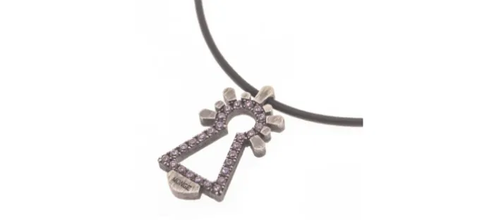 Colgante de plata envejecida de primera ley (925) con Circonitas rosas y caucho de 42 cm. (Posibilidad de hacer el caucho en cualquier medida)