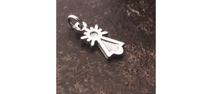 Medidas de la silueta sin contar la anilla superior: 16mm (alto), 7,5mm (ancho) y 1,7mm (grueso) Peso aproximado 1,9gr.