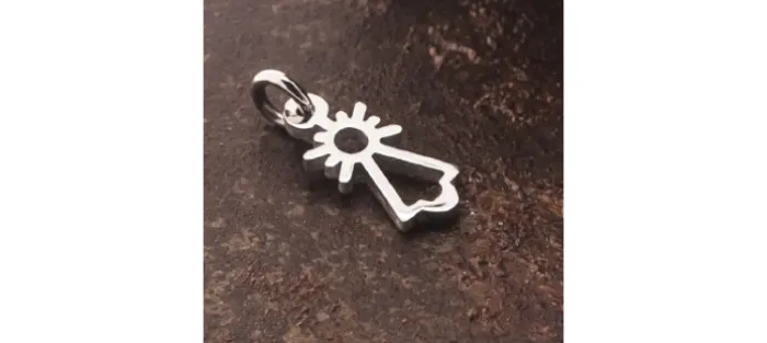Medidas de la silueta sin contar la anilla superior: 16mm (alto), 7,5mm (ancho) y 1,7mm (grueso) Peso aproximado 1,5gr.