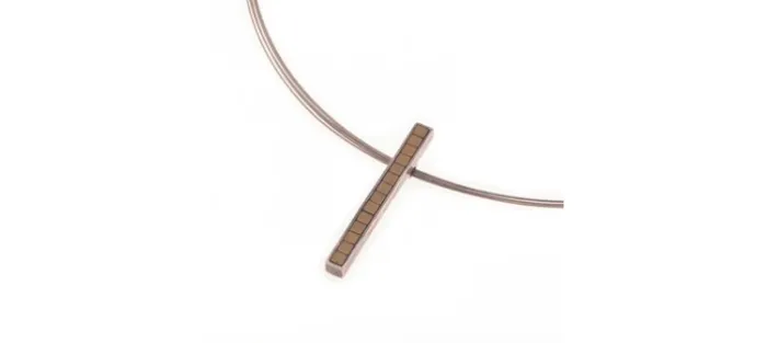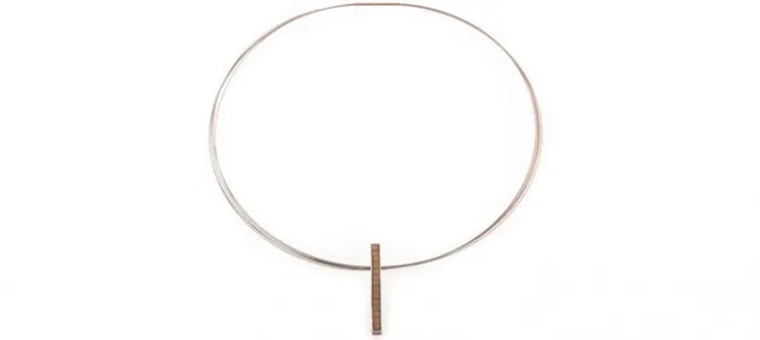 Colgante de plata envejecida de primera ley (925) y Pirita. Sirga de acero de 42 ó 45 cm.
