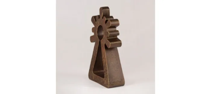 Figura de calcita reconstituida de Belchite con pátina imitando a bronce. (Marrón oscuro). Medidas:37,5cm X 23cm X 9cm. (Altura real de la Virgen de Pilar) Peso aproximado: 5kg.