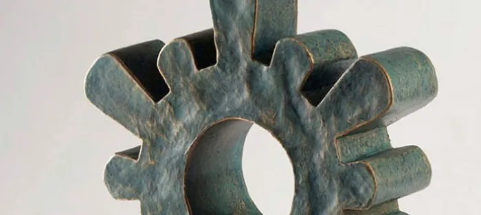 Figura de calcita reconstituida de Belchite con pátina imitando a bronce oxidado. (Verdoso). Medidas:37,5cm X 23cm X 9cm. (Altura real de la Virgen del Pilar) Peso aproximado: 5kg.