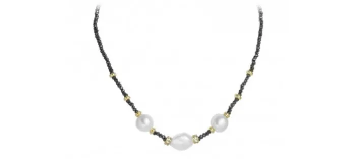 Gargantilla de espinela negra, plata de primera ley (925) chapada en oro rosa de 18 K y perlas cultivadas.