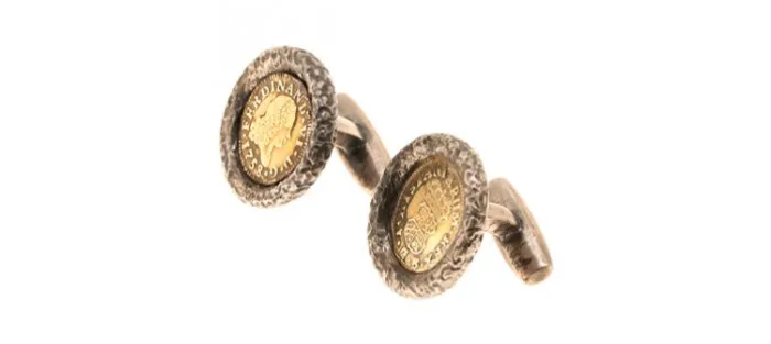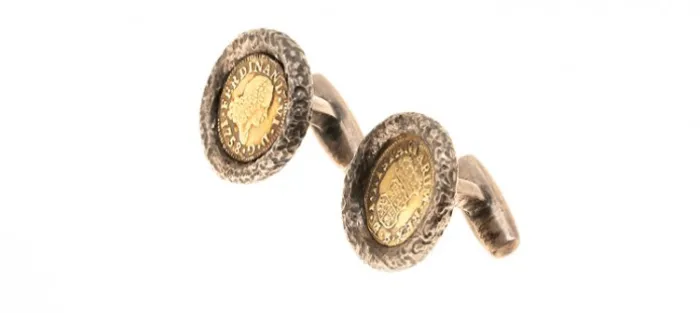 Gemelos redondos en plata envejecida de primera ley (925) y oro amarillo de 18 Quilates.