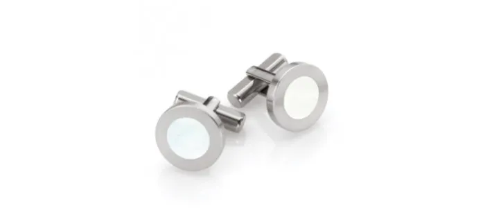 Gemelos TeNo de Acero Inoxidable, redondos con incrustación de Madre Perla.