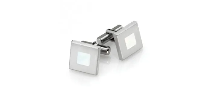 Gemelos TeNo de Acero Inoxidable, cuadrados con incrustación de Made Perla.