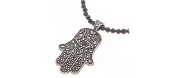 Colgante de plata envejecida de primera ley (925) con circonitas. Collar de onix de 60cm (posibilidad de fabricarlo en cualquier medida).