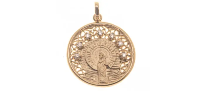 Medalla de plata de primera ley (925) con baño de oro de 3 micras y circonitas.