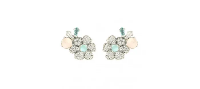 Pendientes de plata de ley 925, cuarzo rosa, símil ópalo azul y circonitas.