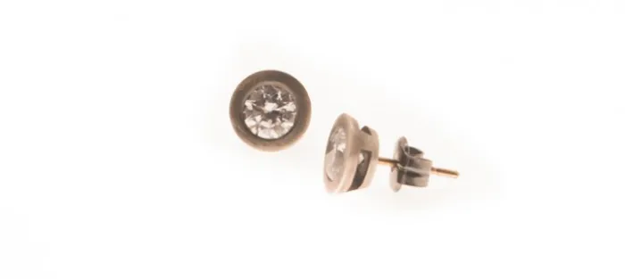 Pendiente de plata envejecida de primera ley (925) con Zirconita blanca. Perno en oro amarillo de 18 Quilates.