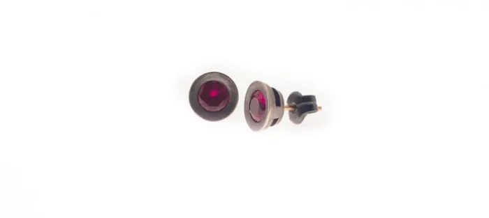 Pendiente de plata envejecida de primera ley (925) con un Rubi sintético . Perno en oro amarillo de 18 Quilates.
