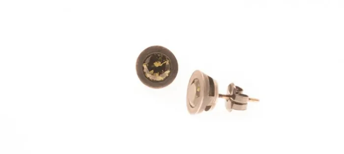 Pendiente de plata envejecida de primera ley (925) con Zirconitas verde botella. Perno en oro amarillo de 18 Quilates.