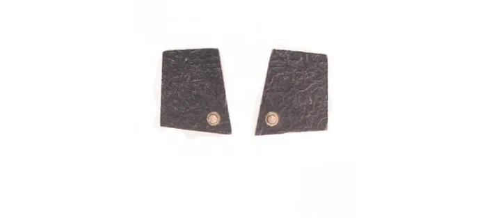 Pendiente trapezoidal de plata envejecida de primera ley (925) y oro amarillo de 18 K. Perno también en oro amarillo de 18 k. Cada pendiente lleva engastado 1 diamante coñac de 1,7mm (Peso total de los diamantes: 0,04 Cts).