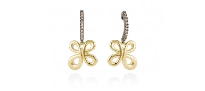 Pendientes de plata de primera ley (925) con baño de rutenio y chapado en oro amarillo de 18kt y circonita coñac. (tamaño: 3 cm.)