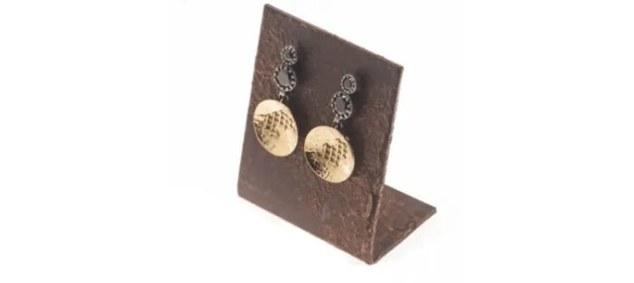 Pendientes de oro amarillo de 18 Quilates, plata envejecida de primera ley (925) y circonitas negras.