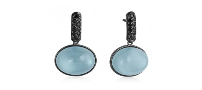 Pendientes de plata de primera ley (925) con baño de rutenio, circonitas y doblete cuarzo turquesa.